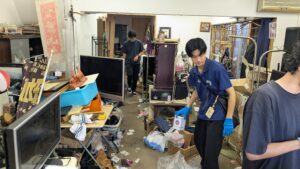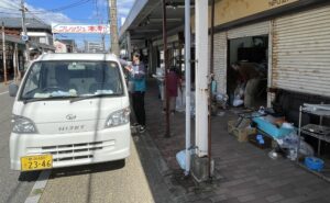 写真(左)=青陵学園が新潟市と組んで有効活用しようとしている空き店舗。従来はゴミがあふれている状況でした (右)=青陵の学生らが9月末から大掃除に乗り出しました