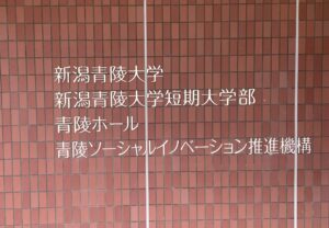 写真=青陵大学・短期大学部の玄関に、この夏「青陵ソーシャルイノベーション推進機構」の看板が加わりました