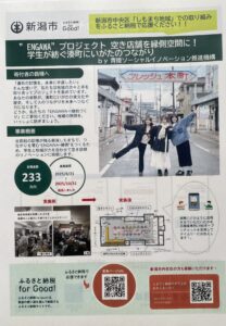 写真(左)=新潟市が作成した「ENGAWAプロジェクト」のチラシ (右)=クラウドファンディングのQRコードです